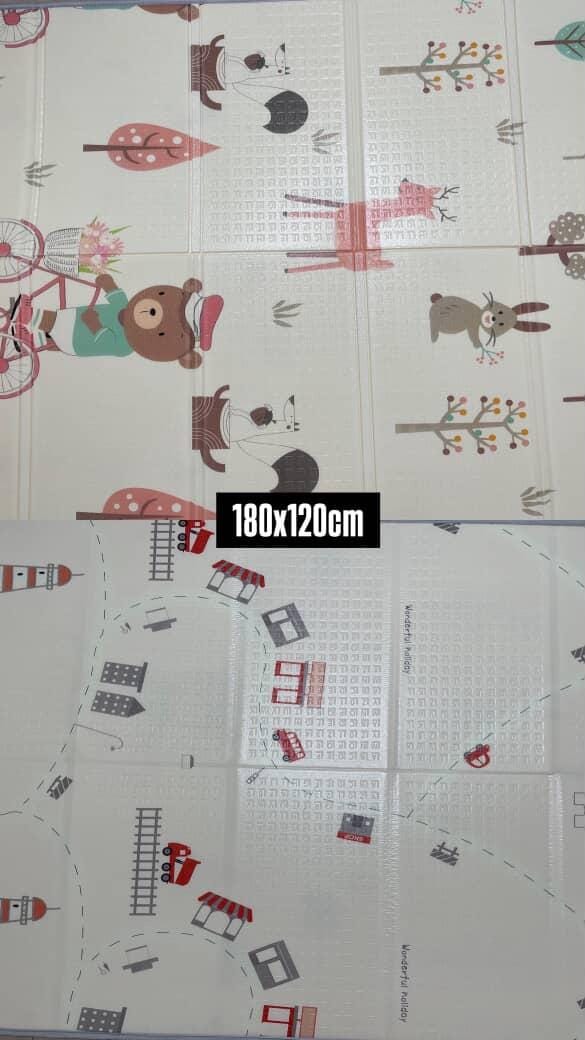 Mekana i praktična podloga za decu dimenzija 180x120cm. Obostrani dezen, lako se čisti i štiti pod tokom igre.